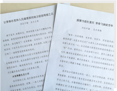 新冠肺炎疫情發(fā)生以來,公司青年員工在打贏防控阻擊戰(zhàn)和復工復產(chǎn)工作中,用實際行動踐行了初心使命、體現(xiàn)了責任擔當。為更好地宣傳和弘揚公司青年員工聽黨指揮、勇挑重擔、不畏艱險、英勇奮斗的感人事跡,公司團委于4月26日至5月20日開展了“青春戰(zhàn)‘疫’”主題征文活動。廣大青年員工積極參與,踴躍投稿,用文字講述自己的“戰(zhàn)‘疫’”故事和對疫情防控中彰顯出的中國特色社會主義制度優(yōu)勢,對堅持黨的集中統(tǒng)一領(lǐng)導、堅持以人民為中心的價值追求,集中力量辦大事等的深入思考。